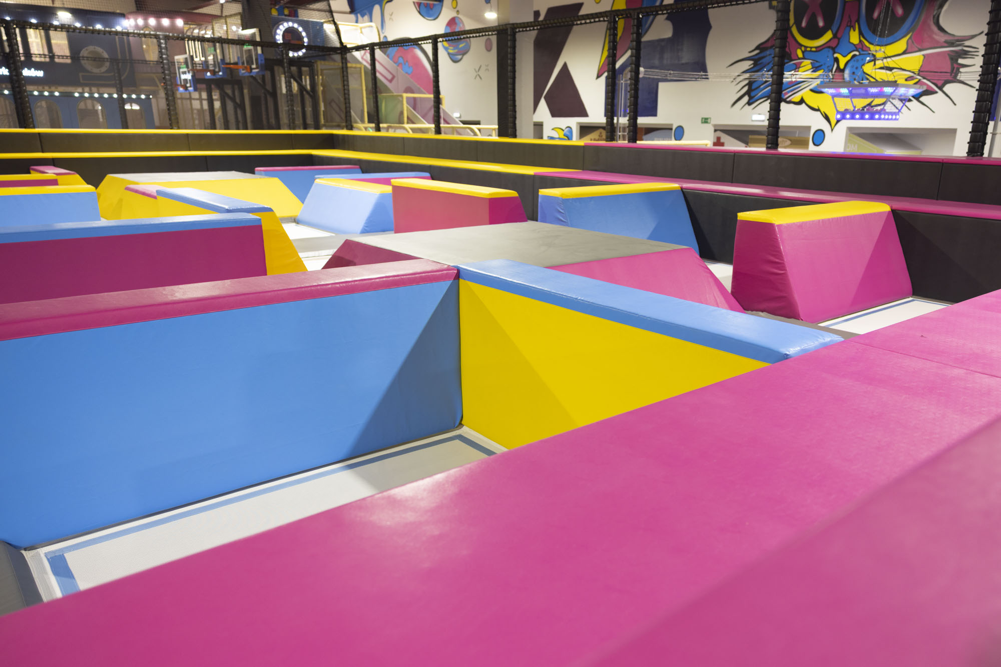 Ponad 1400 m² pełnych energii i zabawy! W naszej strefie znajdziesz semi-sport trampoliny, strefę parkour, tor przeszkód, wieżę do skoków i wiele innych atrakcji, które gwarantują niezapomniane emocje dla dzieci, młodzieży i dorosłych.