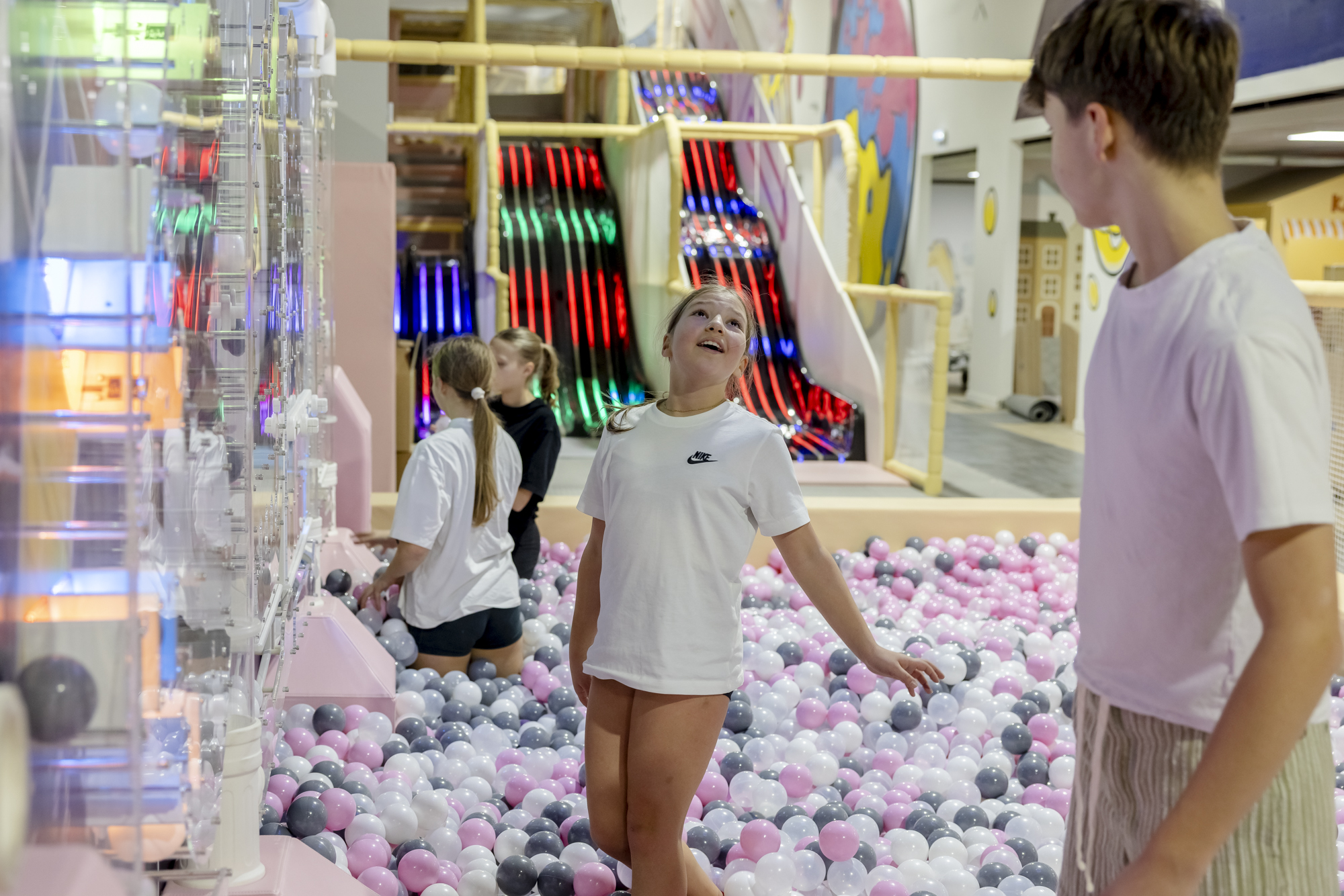 Zjeżdżalnie, siatka liniowa, pełne niespodzianek labirynty, basen z piłeczkami oraz interaktywne tablice, które angażują i rozwijają dzieci w każdym wieku.